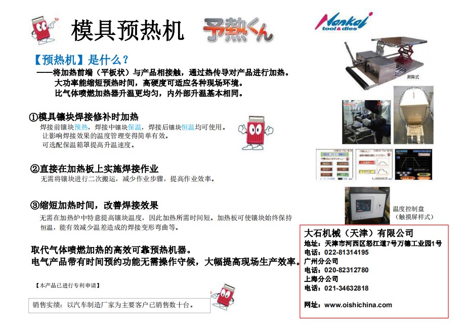 郵箱:kent@oishi-machine.com大石機(jī)械(天津)有限公司是日本大石機(jī)械株式會社在中國的全資子公司。公司成立于2004年7月,并于2007年在廣州、上海、武漢成立分公司。
