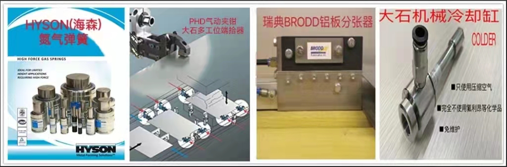本公司是HYSON氮?dú)鈴椈稍谥袊目偞?,并提供管路設(shè)計及售后服務(wù)。同時還代理美國PHD氣動夾鉗、SWEDEN機(jī)器人平衡缸、美國LSP噴涂系統(tǒng)、法國PRONIC模內(nèi)攻絲機(jī)等。另外,本公司還提供多工位模具自動化端拾器產(chǎn)品,從設(shè)計、制造、運(yùn)輸、安裝、調(diào)試為客戶提供整套“交鑰匙”工程。